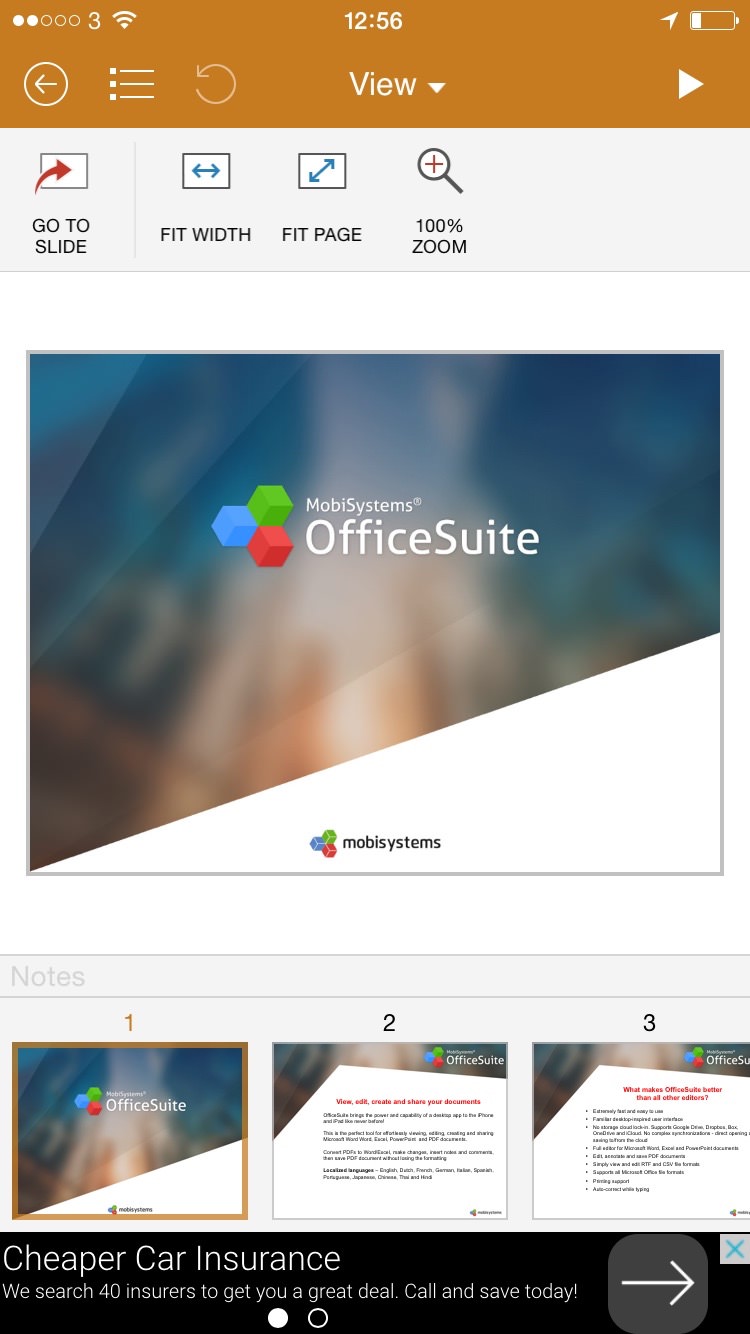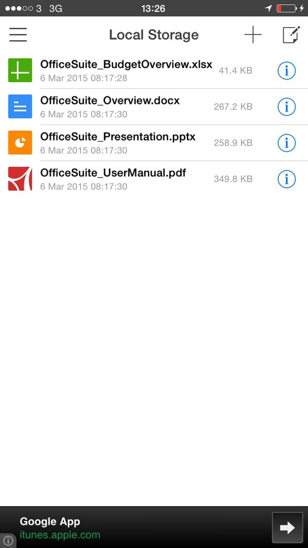 As you’ve seen in the screen shots MobiSystems Office Suite is advert supported unless you do an in app purchase. Even without shelling out extra money Office Suite doesn’t feel like it’s giving away too much screen space for adverts. Adverts are only shown when you navigate around the app or in a non editing view.