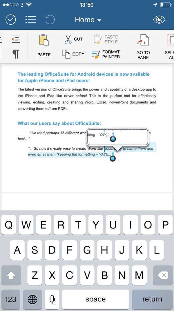 Although strongly influenced from the obvious source that doesn’t mean developers haven’t found a way to incorporate a few nice touches. For example, when selecting text of magnifying glass appears to give you better precision in the zoomed out view.