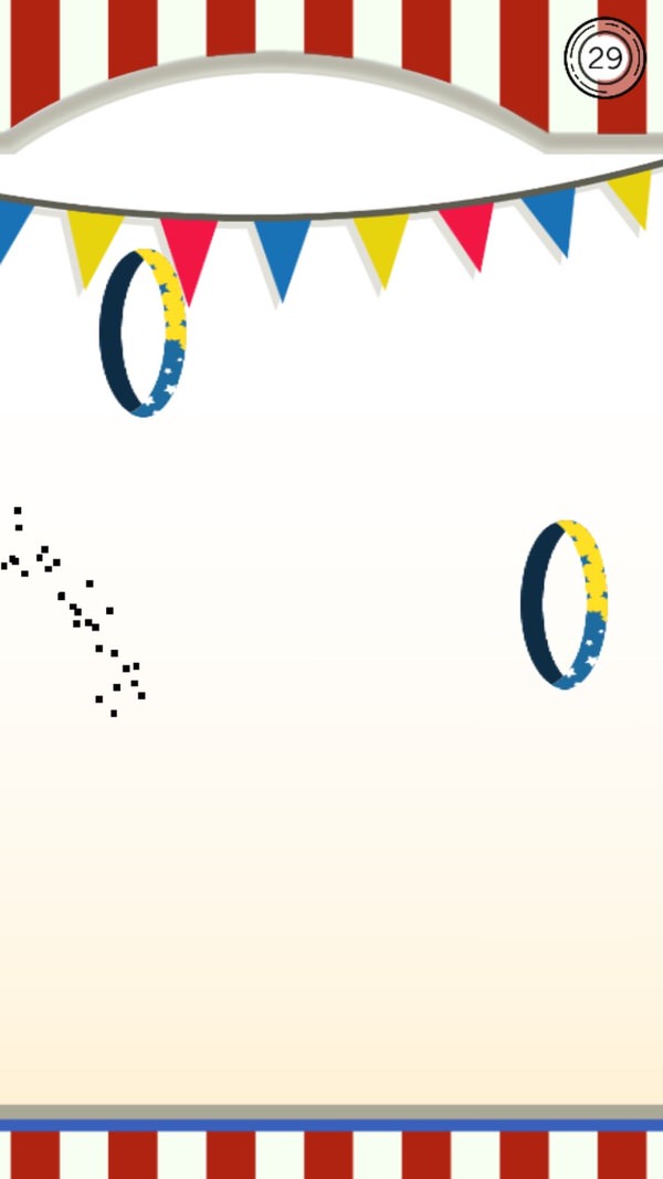 A simple game like this doesn’t need any flashy graphics but it does suffer from some low quality graphical assets which don’t seem to be retina. The most obvious offender here is the circus ring level (3). The rings look jagged with no anti aliasing or shadows to smooth things out. While this doesn’t detract from the gameplay it’s noticeable enough to comment on. The posted images look smoother than it does on my iPhone 6 with iOS 9 running.