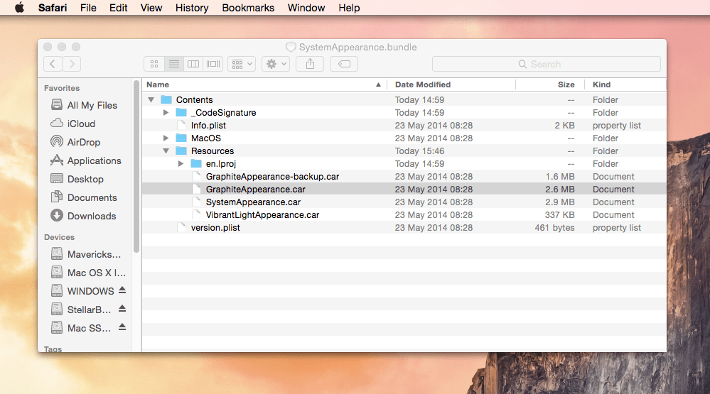 Rename “DarkAppearance.car” to “GraphiteAppearance.car”
