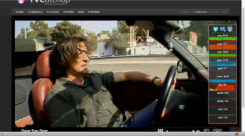 Another example taken from a popular UK streaming site, tvcatchup.com. As you can see the CPU meter on the right at the op is constant at it’s usage levels.