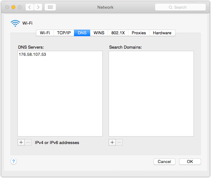 Your window will look different to the above image. It’s ok to click on the DNS Server entry and then press the – (minus) button at the bottom to remove that entry.