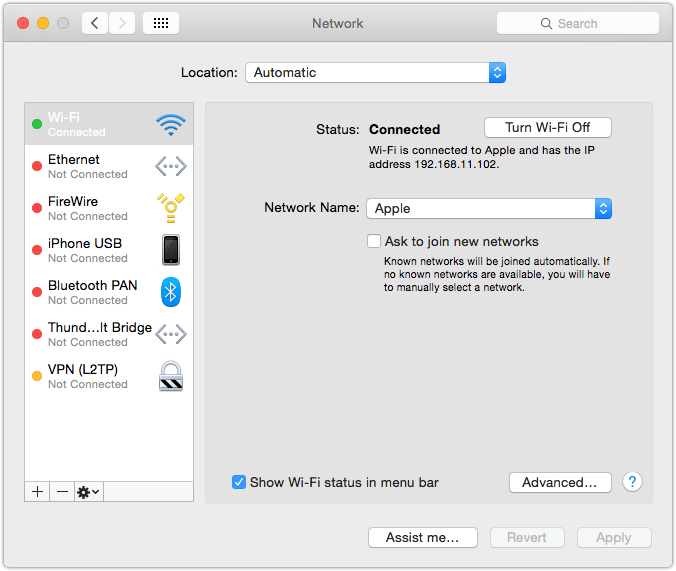You might have an active Wi-Fi or ethernet connection or even both but select the main one you use. In this case we only have Wi-Fi, so go ahead and select that and click on Advanced.