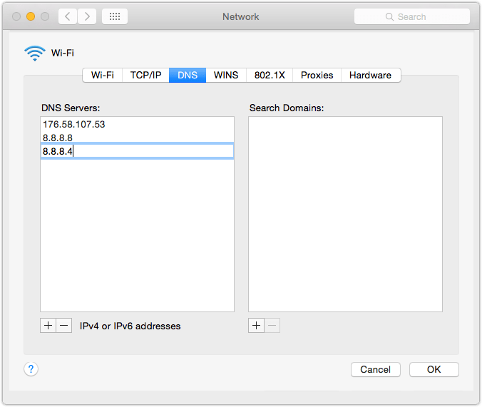Add the DNS entries you would like. Here I’ve used 8.8.8.8 for Googles DNS entries but kept a custom DNS entry (UnoTelly). Once done click ok.