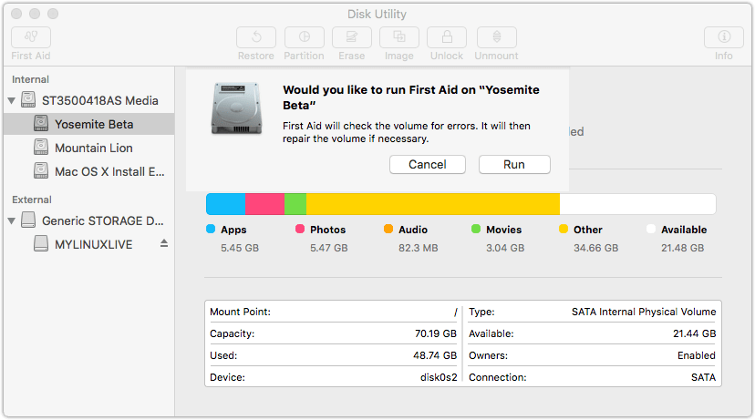 Gone is the old look and at first glance so is First Aid and Repair. To access those features it’s now an all in one button at the top left under called First Aid.