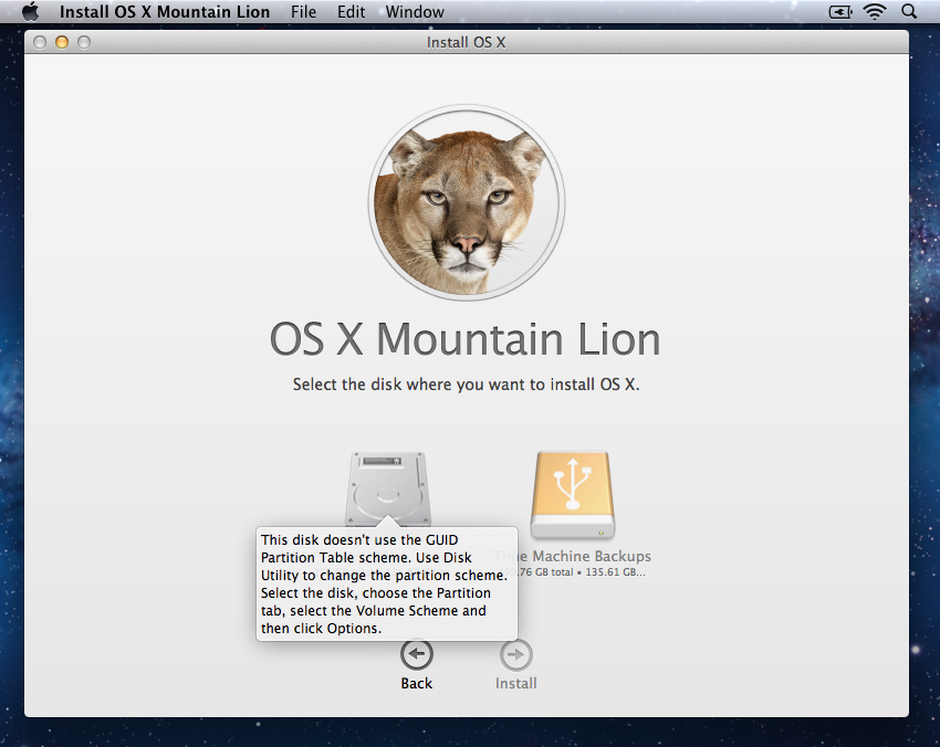 Mountain Lion Installation Error Messages