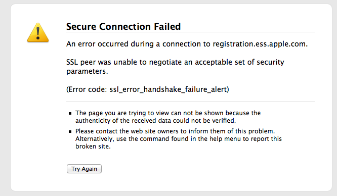 is where facetime is trying to go to resolve a certificate for facetime but this brings up the following error message.