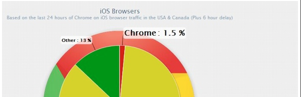 This isn’t something to be sneezed at. Chrome for iOS which was released more or less a month ago is now claiming 1.5% of mobile internet browsing. Safari still rules the roost with 85.1% of market share, other??? equates to 13% share. On that stat if you have still yet to give Opera mobile a try you should do. Yes, it’s based on webkit like safari and chrome yet so many neat speed features INCLUDING data compression out of the box to make the most of data packages.