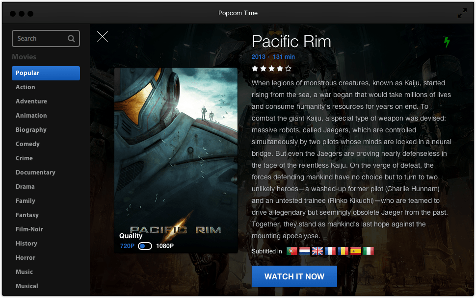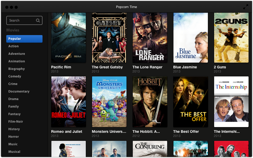 Popcorn Time offers a rather interesting way to watch movies found on “legit” torrent sites without having to download them. You can stream the torrents without having to fully download the entire move.