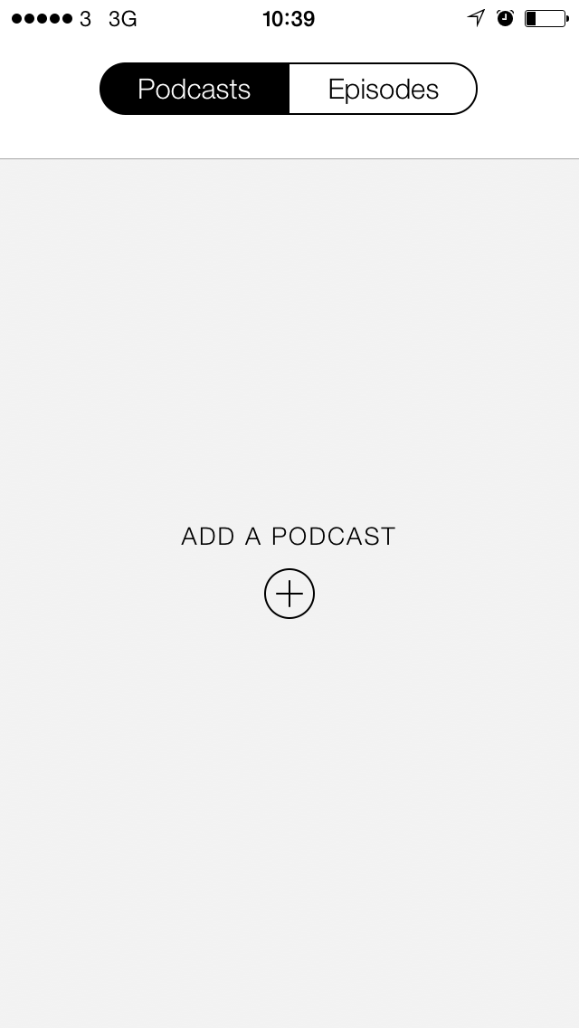 The main screen that was once empty at the start is now full of your subscriptions and like most apps worth their ilk a pull down from the top performs the refresh. Update progress is shown by the smallest of lines right the podcasts / episodes labels at the top.