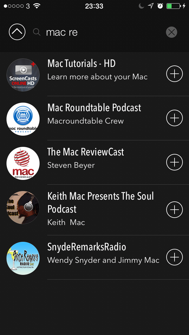 Castro is really aimed for those who know what casts they want to subscribe to and not discovering new ones as in the Apple podcast offering. You can argue that most discoverable casts are in the top 10 anyways but we all know that you shouldn’t solely rely on Apple to promote your show. There are no categories or presets to scroll through but you do get results based on searches. As you start to type Mac Review Cast the list populates based on text entry.