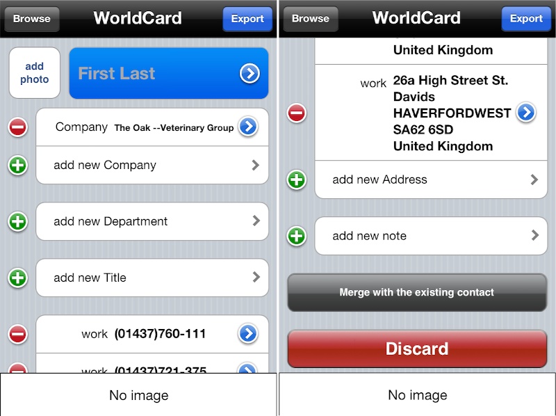 Got a business card with work, mobile and fax numbers? Yes, somehow WorldCard Mobile knows how to assign those to the relevant contact details on the contacts.