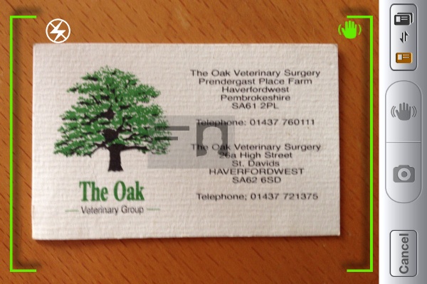 I like to pull an app out and jump right in to see what it can do and thankfully Worldcard help with getting going but not so much it get’s in the way. Cards can be captured either by taking a phone, using a pre taken photo or with the most effective method, turning on stabilisation. All you have to do is then hold the iPhone still and when the targeting window turns green it’s snaps a picture. Most people will know how tricky pressing that camera button without causing a loss of focus can be.