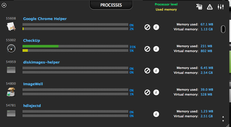CheckUp has been specifically designed to help you monitor the behavior and health of your Mac in a simple and straightforward manner. This is done in real time. No more needing to go ‘beneath the hood’ to find out all those technical details that could be affecting your system. We’ve done all the work for you!