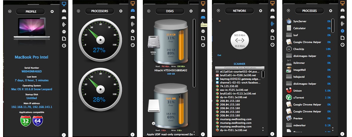 CheckUp is able to detect common problems with a Mac and OS X, and will also provide useful tips to help you fix them. It’s as easy as looking at the dashboard of your car!